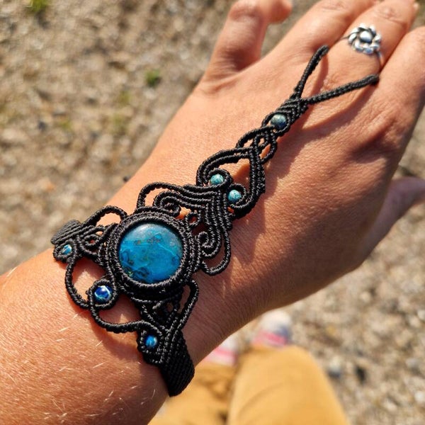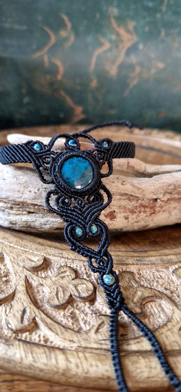 Armband gemaakt van waxkoord. Een azzurite edelsteen verwerkt tot prachtig sieraad die door middel een schuifknoop past op elke pols.