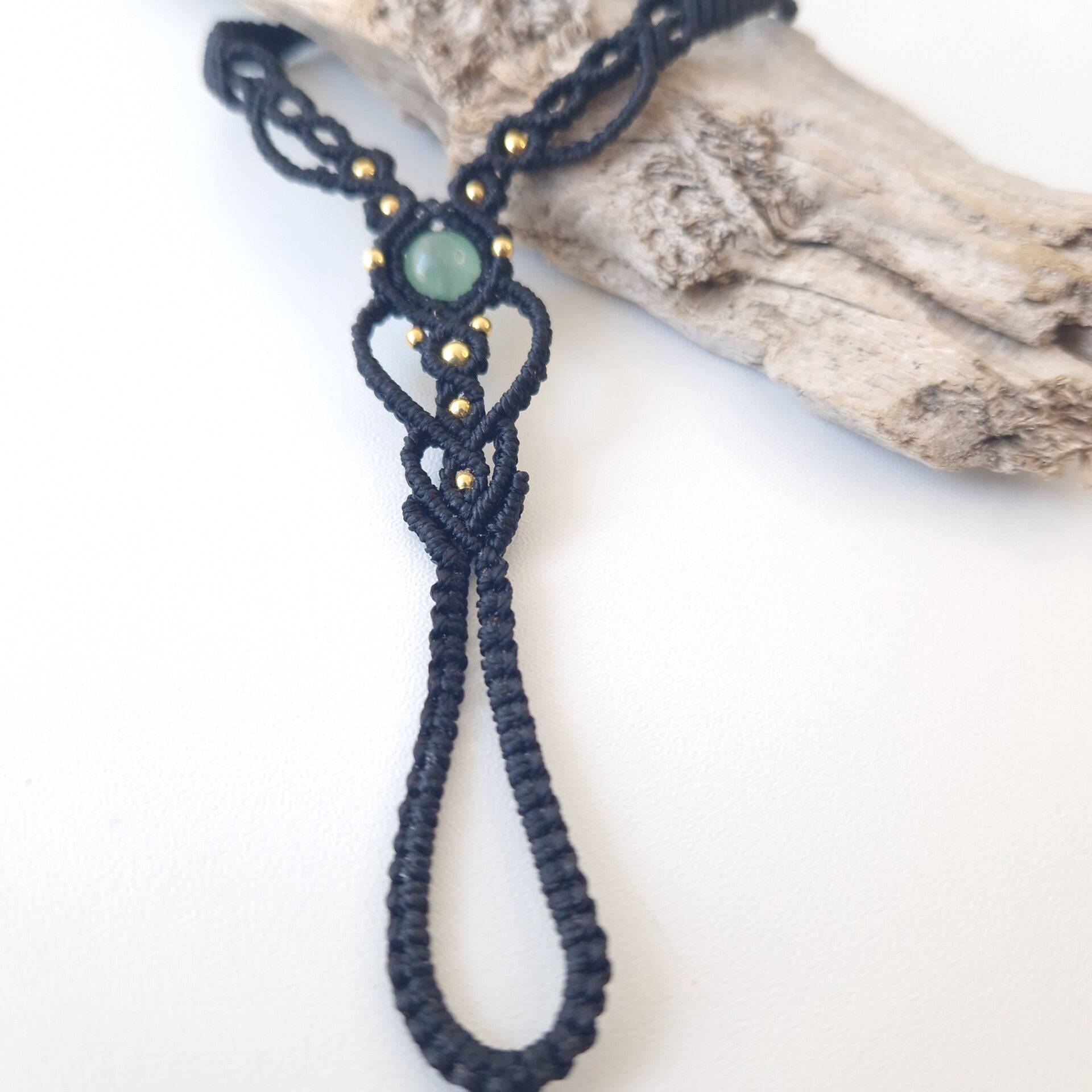deze armband is gemaakt van waxkoord met een aventurijn kraal, en kleine rvs kraaltjes, dit bandje is makkelijk zelf om te doen doormiddel van een schuifknoop.