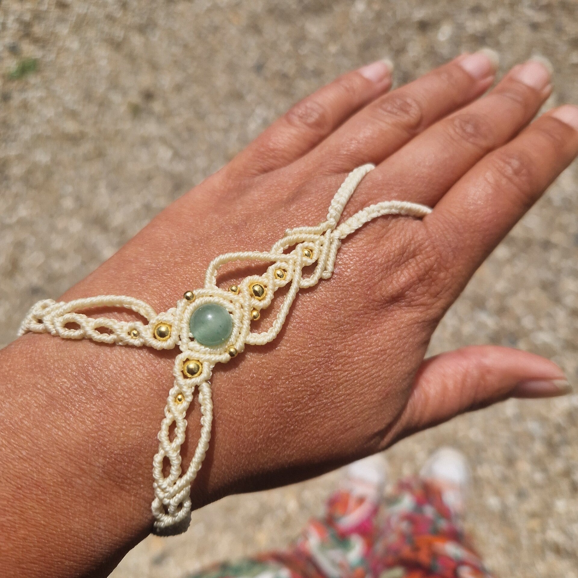 deze armband is gemaakt van waxkoord met een aventurijn kraal, en kleine rvs kraaltjes, dit bandje is makkelijk zelf om te doen doormiddel van een schuifknoop