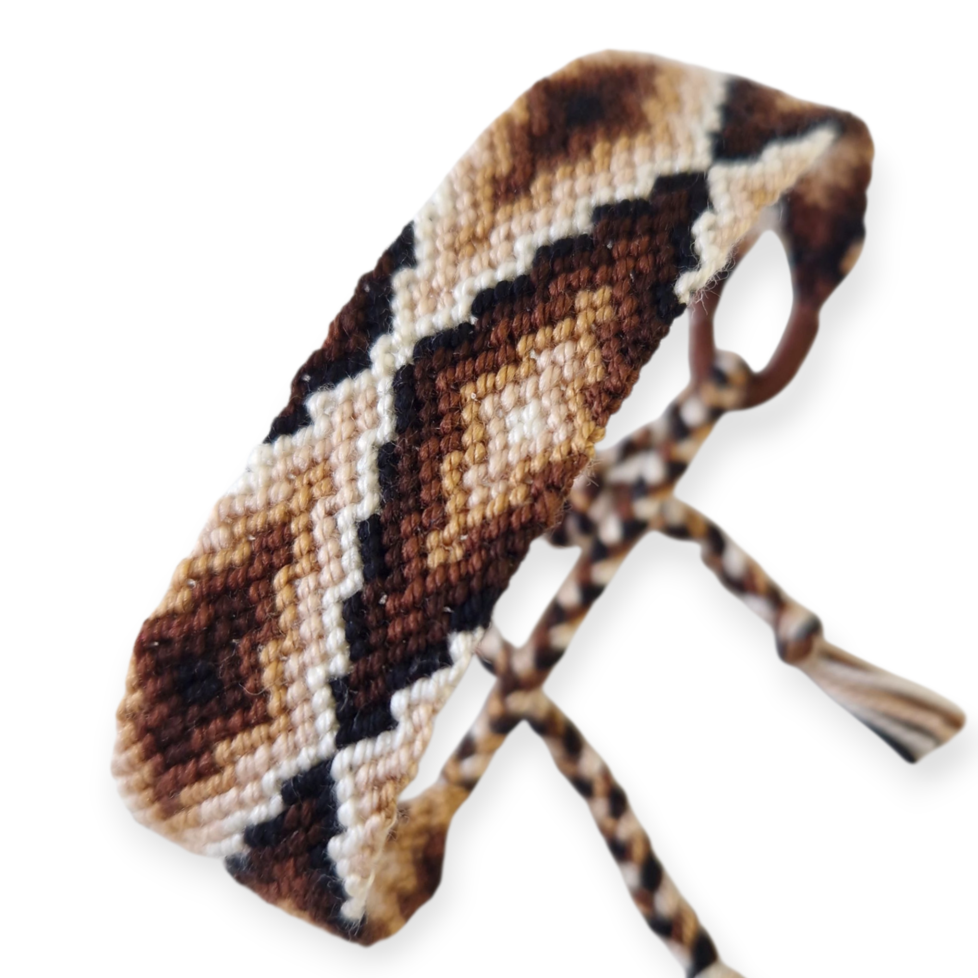 Deze prachtige set bestaat uit vijf unieke armbandjes, elk met de hand gemaakt. Eén armbandje is geknóópt van zacht garen en afgewerkt met een vaste knoop, wat zorgt voor een natuurlijke, ambachtelijke uitstraling. De andere vier armbandjes zijn geregen met stijlvolle kralen in bijpassende kleuren en voorzien van een verstelbare schuifknoop, zodat ze perfect om elke pols passen.